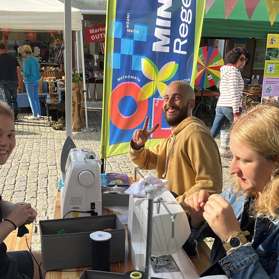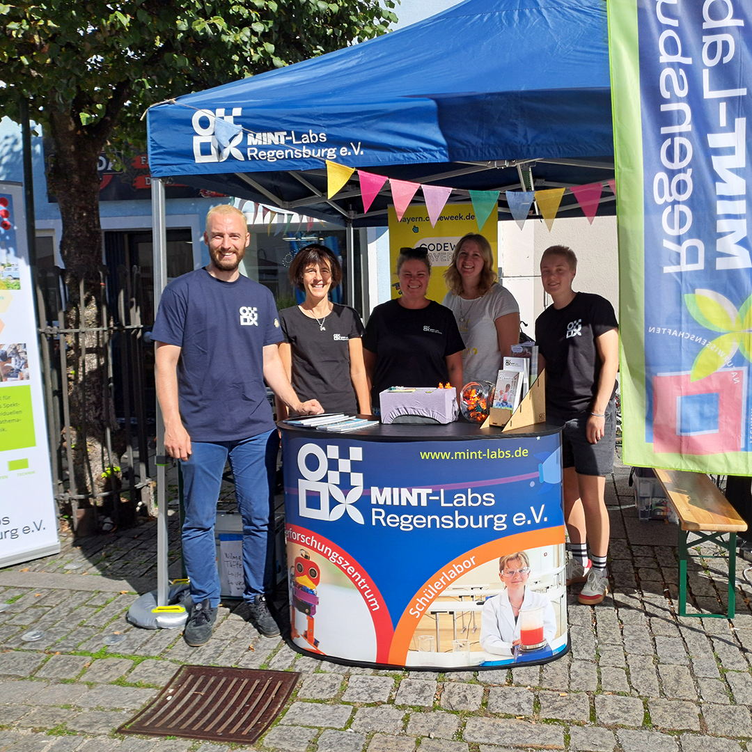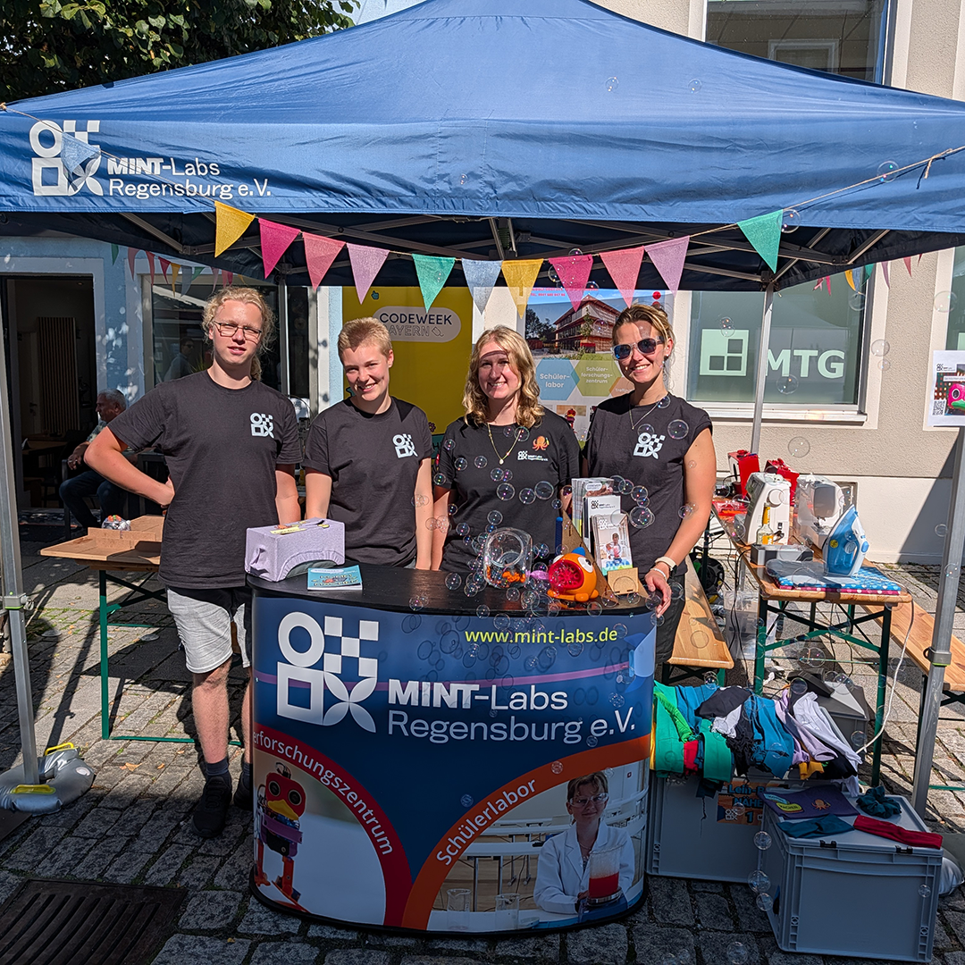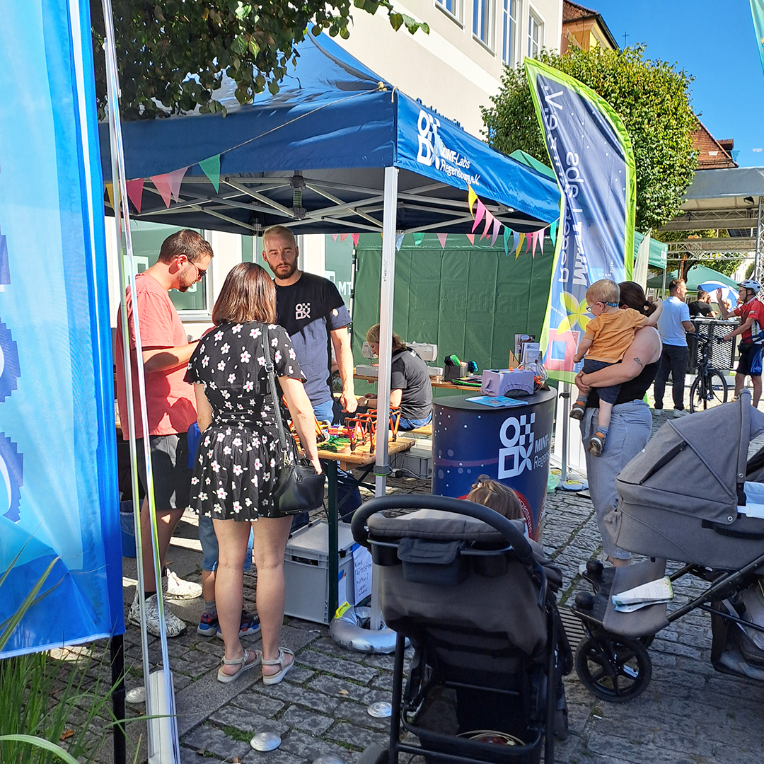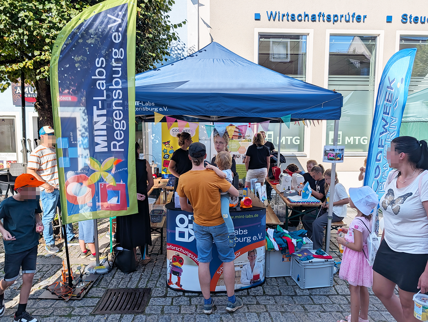Die MINT-Labs Regensburg waren mit mehreren Workshop-Stationen und Aktionen vor Ort: Von Stirnbänder nähen über Blattfarbstoff-Experimente bis zu Ozobots und offenen Daten – die Vielfalt zog große und kleine Entdecker:innen gleichermaßen an.