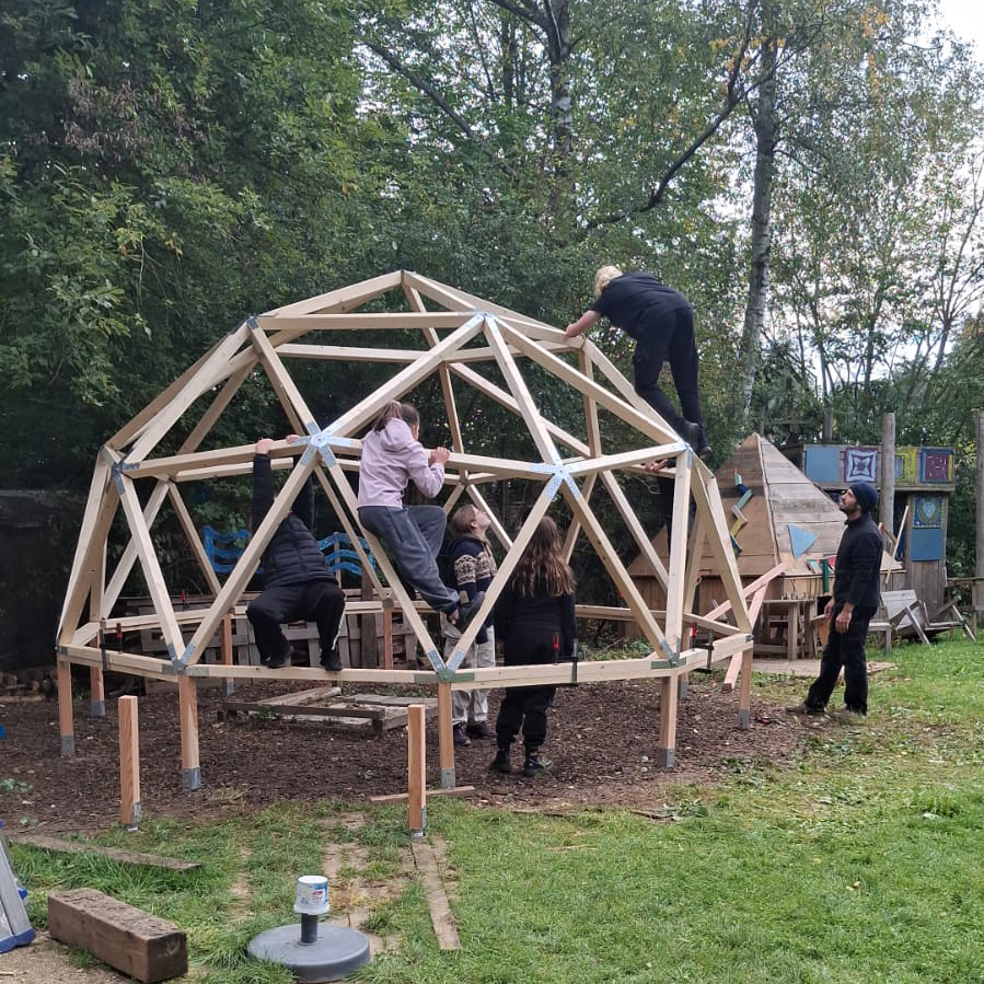Ein GeoDome steht am Bauspielplatz Regensburg als Schutzhütte und Versammlungsort, der andere am SFZ Bajuwarenstraße als wetterfestes „Draußen-Klassenzimmer“. Beide Dome sollen langfristig weiter genutzt und in Folgeworkshops ausgebaut werden – z. B. mit Dachhaut, Innenausbau, Photovoltaik, Beleuchtung usw.