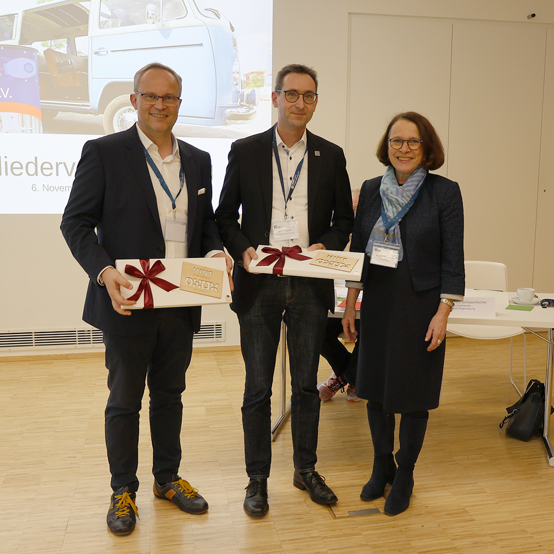 Besonders warmherzig war außerdem die Würdigung der Preisträger des Deutschen Zukunftspreises 2024: Dr. Norwin von Malm und Stefan Grötsch (beide für ams OSRAM International GmbH, Regensburg, tätig). Die Vorstandsvorsitzende gratulierte den beiden zum national bedeutenden Forschungserfolg, überreichte als Zeichen der Anerkennung ein Präsent und bedankte sich im Namen des Vereins für das Engagement zur Förderung der angewandten MINT-Bildung. Vor kurzem haben die beiden Preisträger die unglaubliche Summe von 100.000 Euro dem Verein gespendet. Damit können wir viele hochkarätige Kurse realisieren! Noch einmal vielen Dank von unserer Seite aus!
